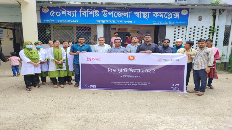সুনামগঞ্জের জগন্নাথপুর উপজেলা স্বাস্থ্য কমপ্লেক্সে ব্র্যাকের সহযোগিতায় বৃহস্পতিবার (৯ অক্টোবর ২০২৫) সারাদেশে যথাযোগ্য মর্যাদায় পালিত হয়েছে বিশ্ব দৃষ্টি দিবসের মূল প্রতিপাদ্য আপনারা চোখ কে ভালবাসুন। চোখের দৃষ্টিরআলো দেখব আমরা চোখের যত্ন নিয়মিত করবো সবাই।
